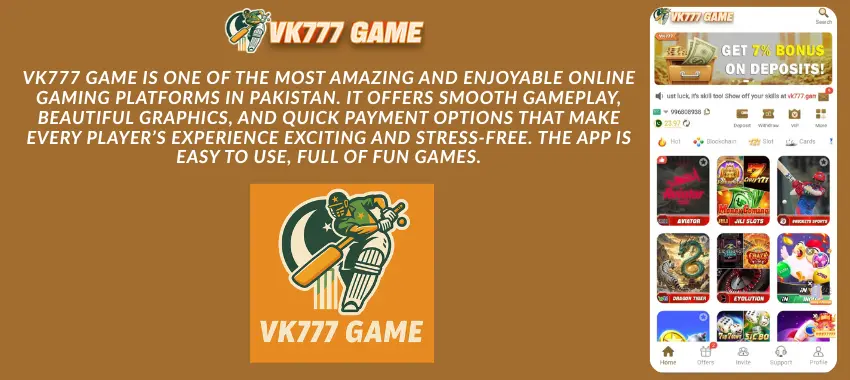 VK777 Game download is the latest online earning app in 2025 made for Android users in Pakistan. It gives you a smooth gaming experience, quick registration, and real earning options. The app is safe, easy to use, and works perfectly on all Android phones.